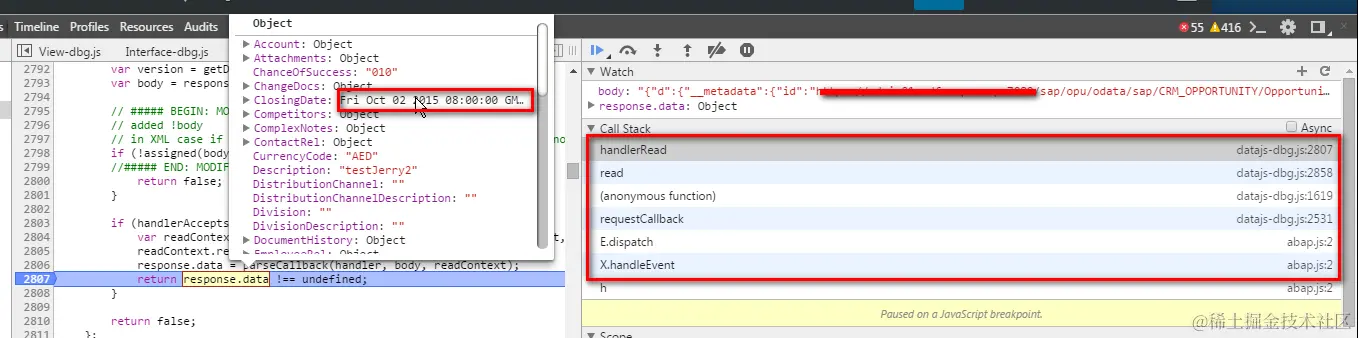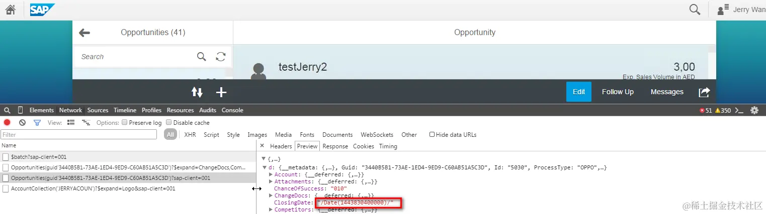 What makes me curious is when I directly paste the url of the odata request to Chrome or SAP gateway client, I get the closingDate with this format instead. The figure below is response in Chrome: