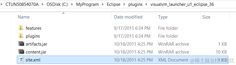 (1) download the zip from visualvm.java.net/eclipse-lau…. Unzip the file and put it to the plugin folder of your Eclipse installation folder. In my laptop it looks like below. There should be a site.xml inside the unzipped folder.