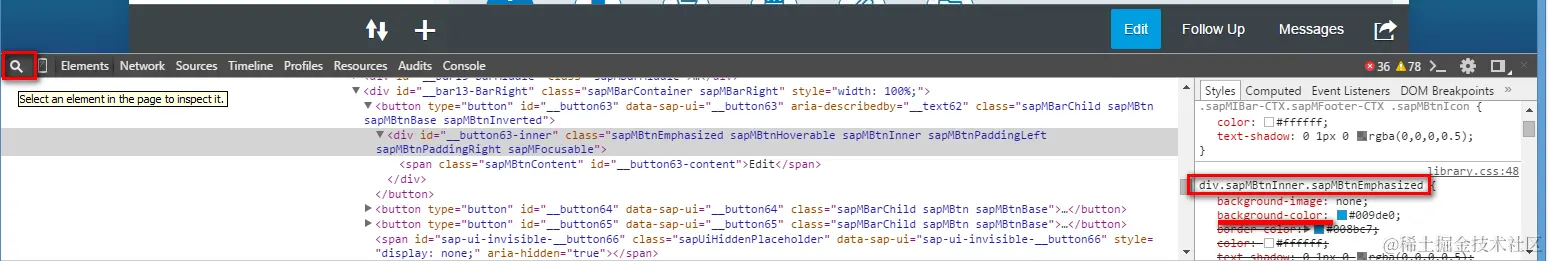 And then we find this CSS class div.sapMBtnInner.sapMBtnEmphasized has controlled the button style.