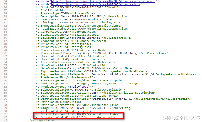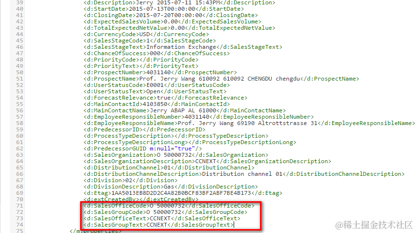(3) retest the odata service read operation, the sales office and sales group are now available in the read response.