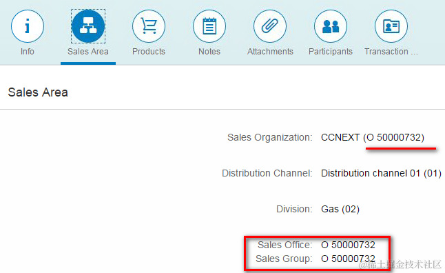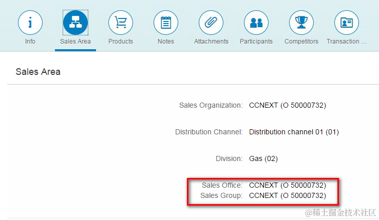 Note the “Sales Office” and “Sales Group” marked with red: