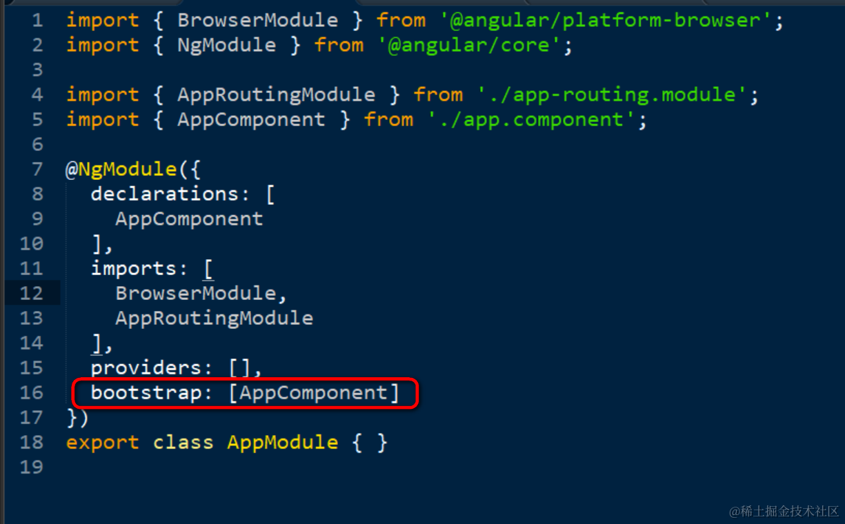 其中bootstrap属性的值AppComponent来自文件app.component.ts: