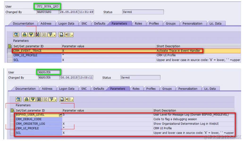 Bingo! The testing user has switched on One order framework event trace via the user parameter CRM_EVENT_TRACE.