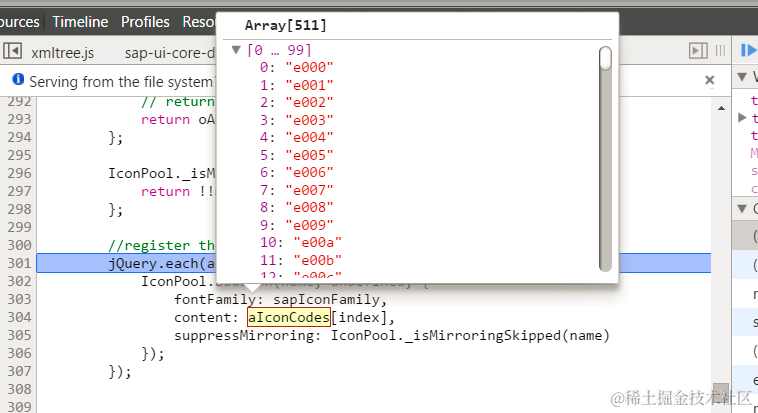 So the icon id for icon “accidental-leave” we find in icon browser page, e000, is just its corresponding code hard coded in IconPool.js.
