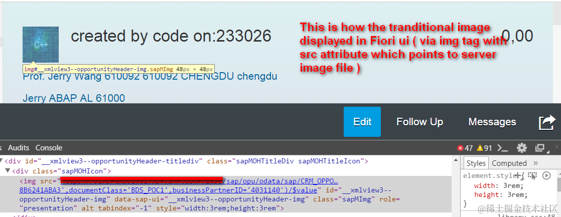 Figure: how the traditional image is displayed in Fiori