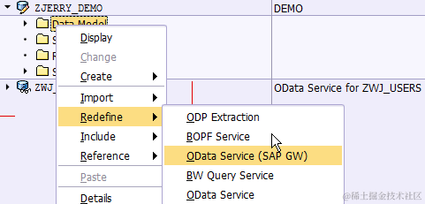 choose Redefine->OData Service(SAP GW):