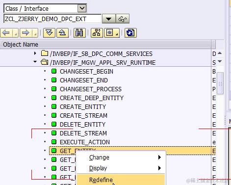It means the following two methods should be redefined now ( for the first method /IWBEP/IF_MGW_APPL_SRV_RUNTIME~GET_ENTITY, it is already redefined in previous blog ).