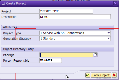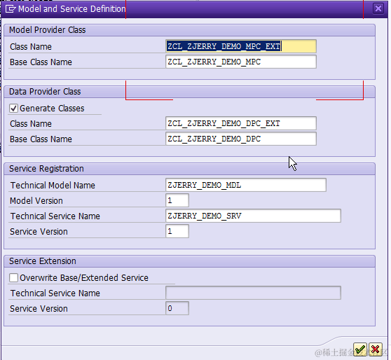 Use default proposed name or change according to your own naming convention. Write down your technical service Name, here is ZJERRY_DEMO_SRV: