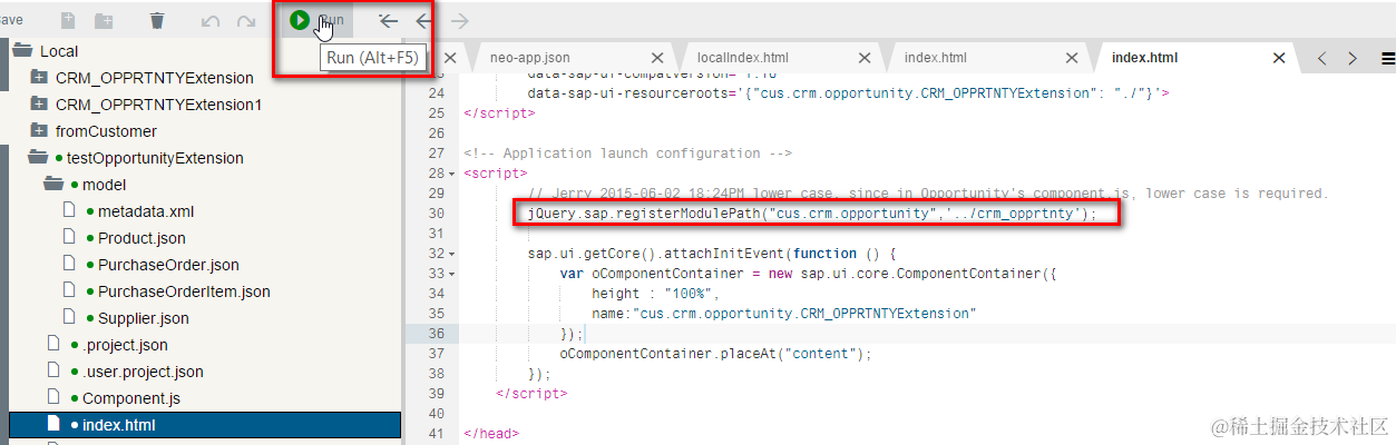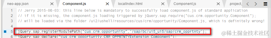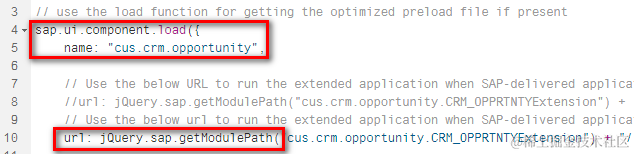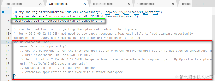 (2) in the source code automatically generated via WebIDE wizard, the standard Opportunity component is loaded with code below,