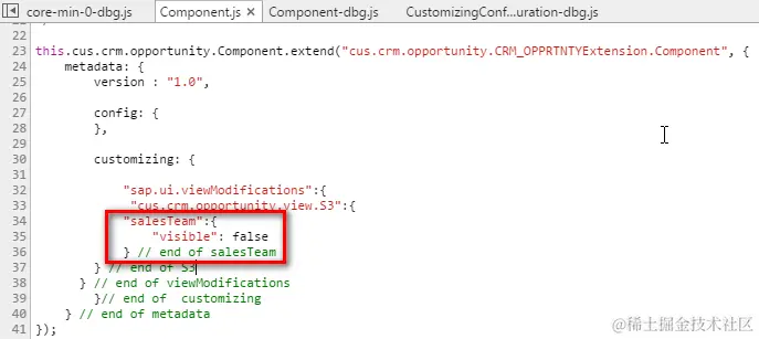 In order to hidden the tab “Participants”, we have to first identify the technical id of this tab: salesTeam