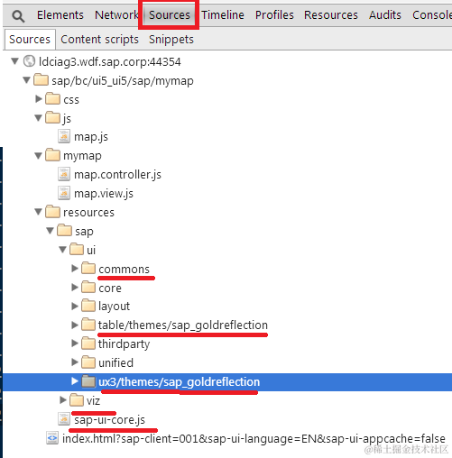 I have launched my UI5 application, I could already see the resource files for the corresponding above four declared libraries under the folder “resources”.