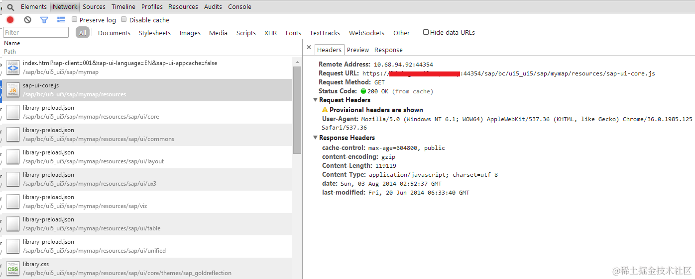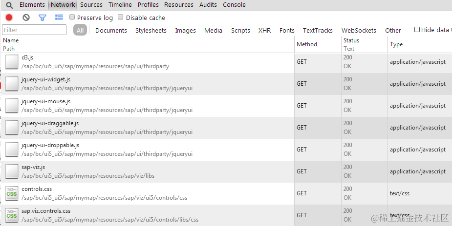 So finally I could see the following files are fetched from repository, which are corresponded to the jQuery.sap.require method call in the previous screenshot ( line 93 ~ line 105 )