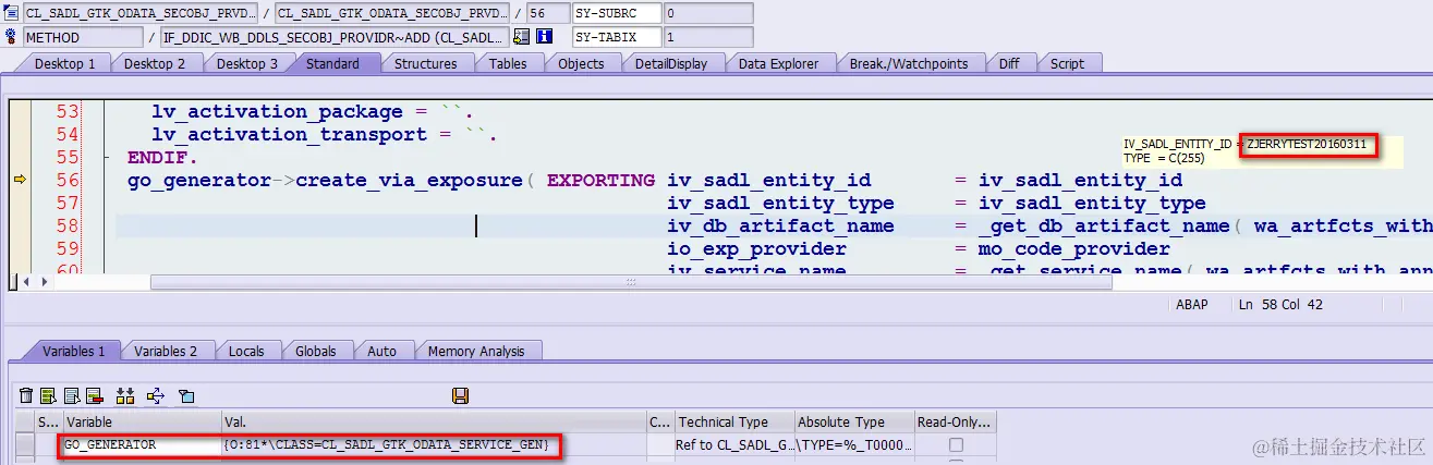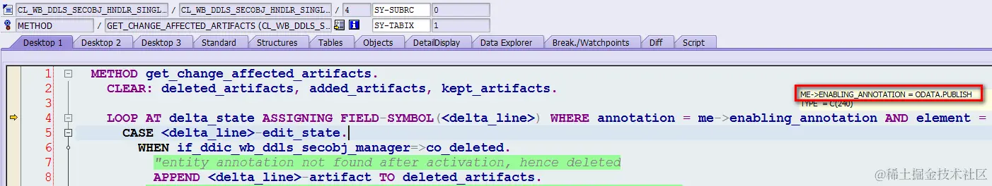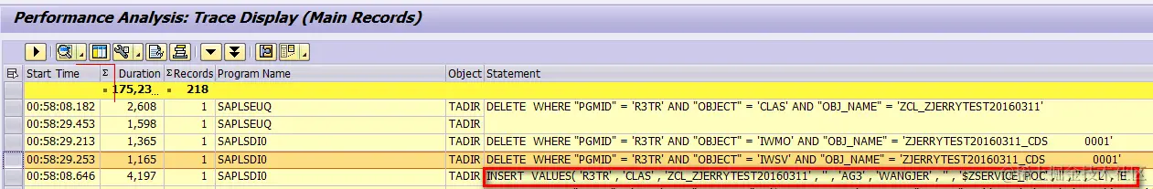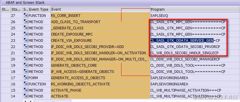 So it means the annotation @OData.publish: true will trigger table entry insertion for type IWMO, IWSV and CLAS during view activation. Then again I switch on ST05 trace and easily find the ABAP code where the table insertion is done.