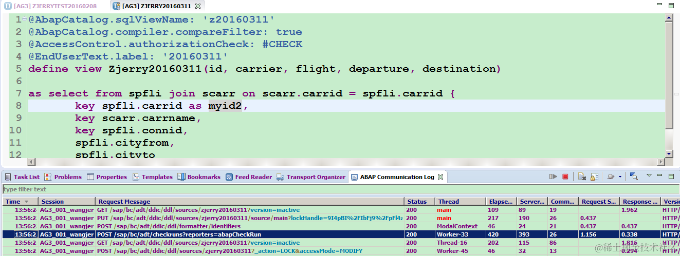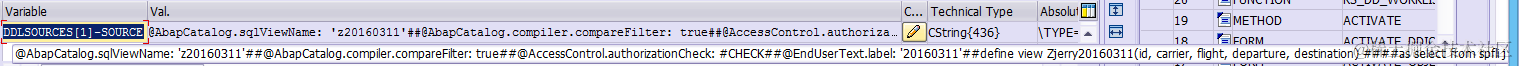And now I ask myself, since what we have typed in Eclipse is pure text, how does ABAP backend interpret the text and convert it into ABAP DDIC objects? The only hint we have is the SDDL package. There are more than 10 classes in it. Although an experienced ABAP developer can easily identify which class is responsible for the text->ABAP view conversion just according to the class name and description, whereas ABAP newbies need more time to practice their intuition.