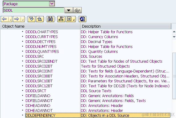 And if you use the same approach described in tutorial part1, you can realize that lots of database tables “DD*” are involved during CDS view activation, for exampleDDLDEPENDENCY. A small tip here is, if you click “Display Object List” button, you will navigate to the package where other related ABAP artifacts within the same package are displayed as well.