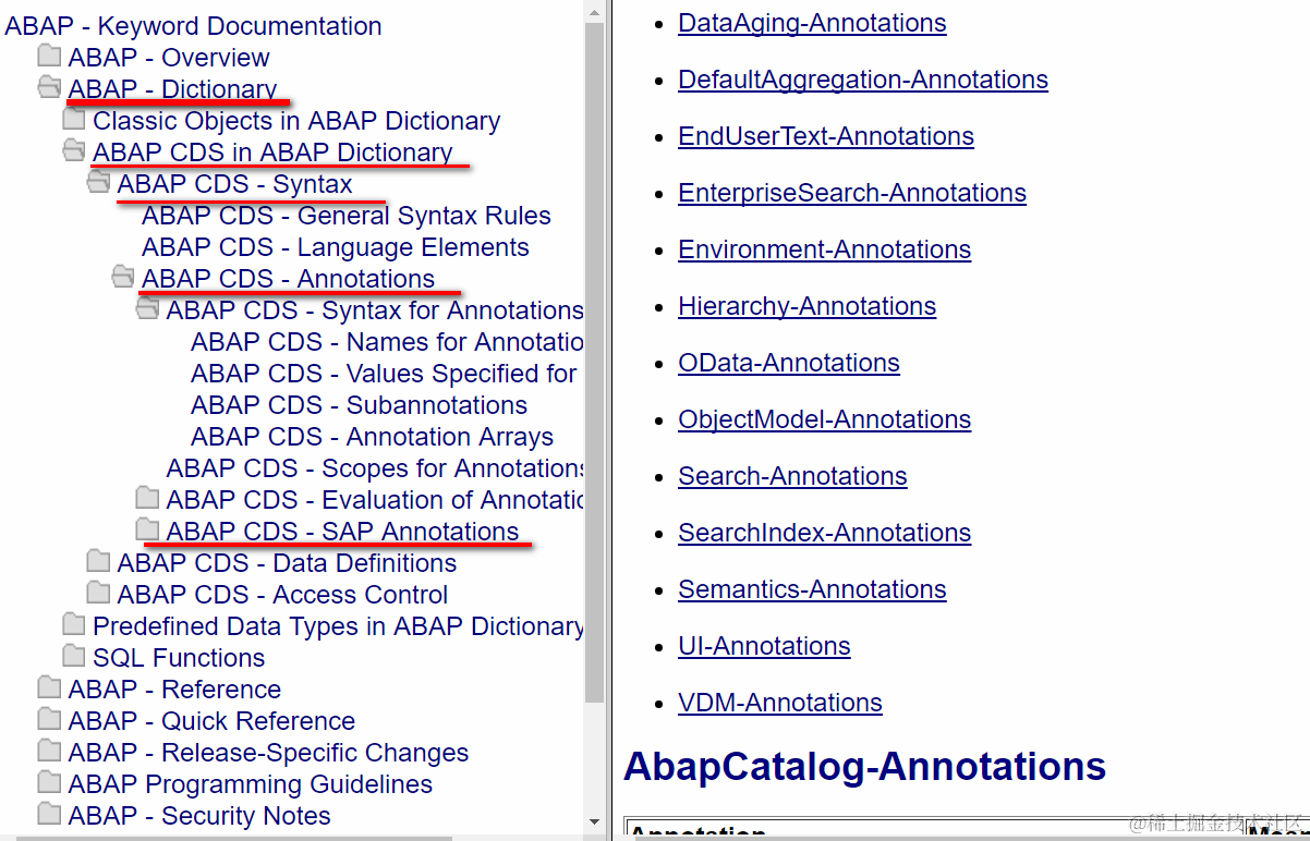 Open this url, and go to the list of SAP Annotations from the path displayed below.