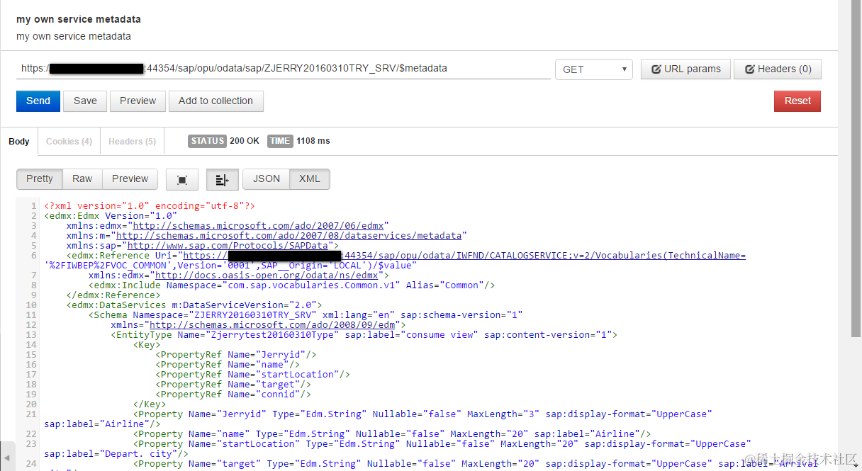 Change the url as “/sap/opu/odata/sap//?$metadata”, and then trigger request. You should see 200 return code with status OK.