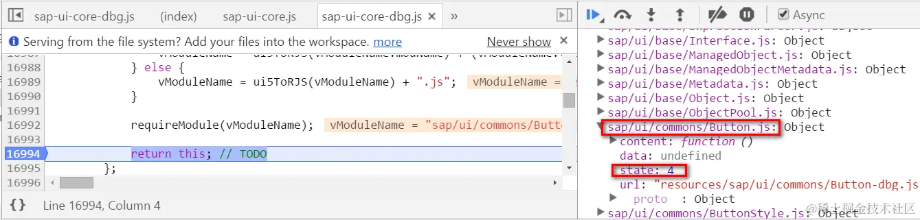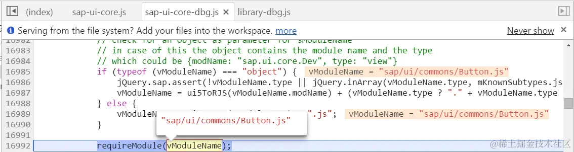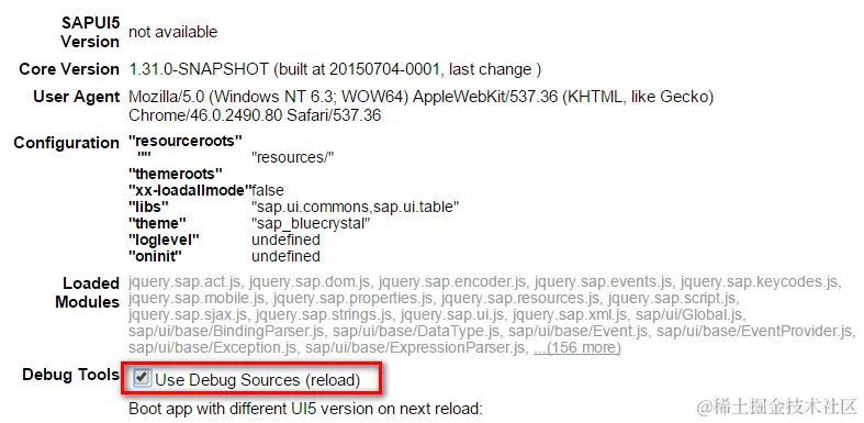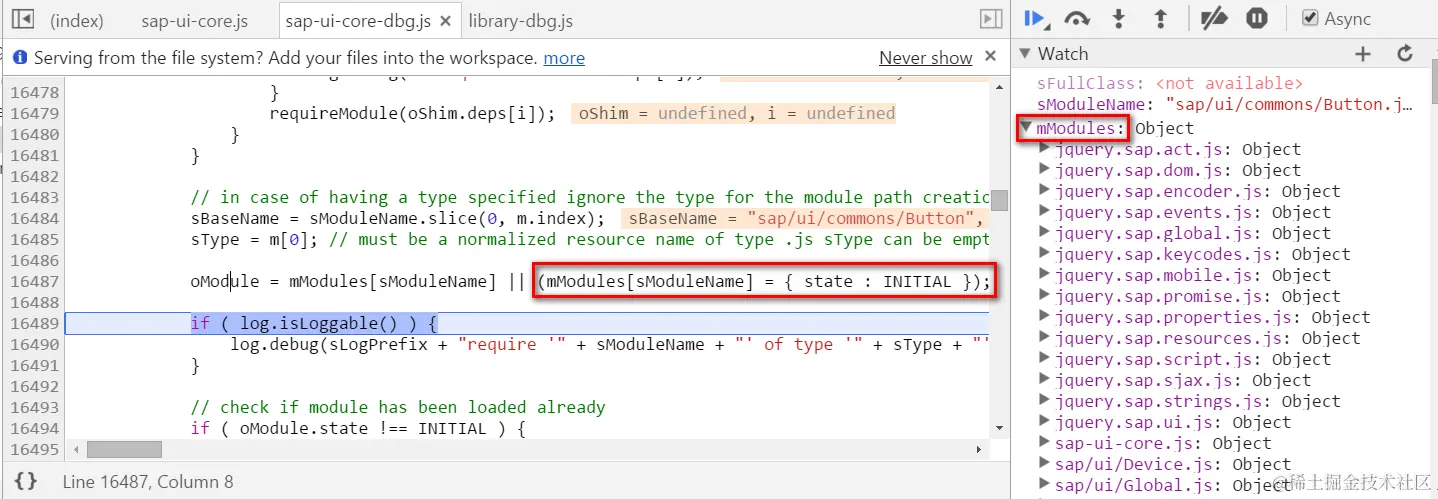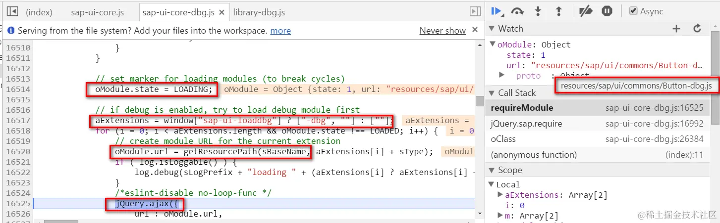 – Line 16517: determine whether we need to load the normal version of js, or the debug version. The flag for debug mode is stored via the field sap-ui-loaddbg in global object window.
