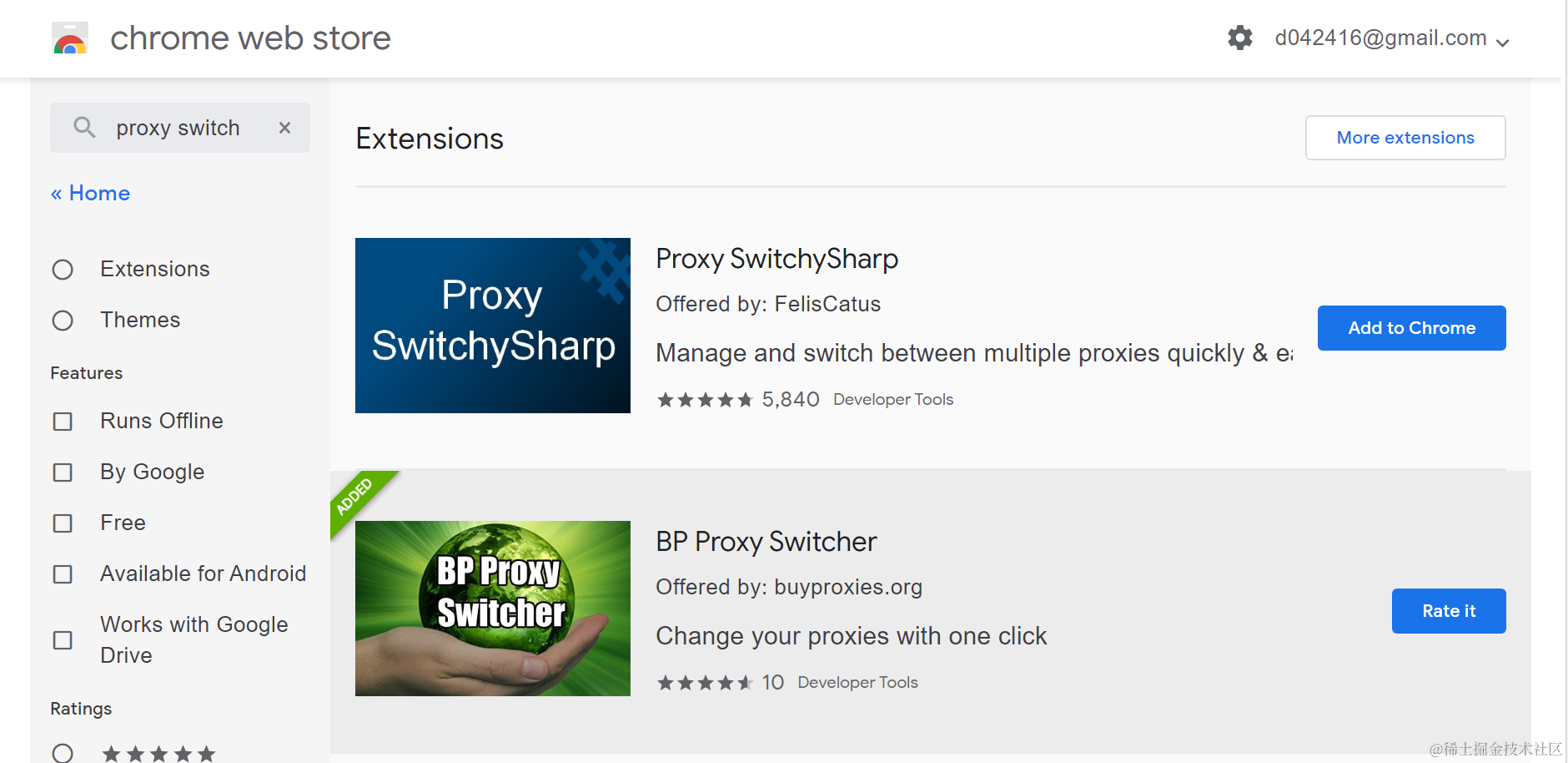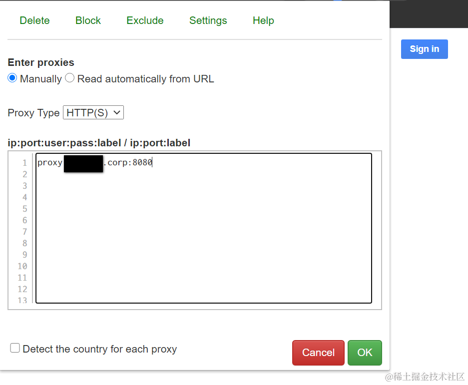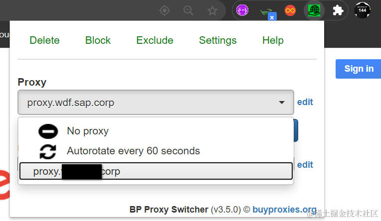 一个好用的便利设置浏览器代理的Chrome扩展应用 已注销 2021-04-26 162 阅读1分钟 打开Chrome web store,搜索关键字proxy switch, 安装之后,在Chrome右上角显示的图标如下: 可以在此手动输入proxy: 直接在下拉菜单里选择需要使用的proxy: 现在使用proxy,可以访问google了: 要获取更多Jerry的原创文章,请关注公众号"汪子熙":