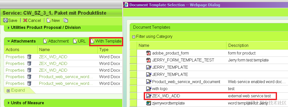 Now you could create attachment based on your word template by clicking button “With Template”. Choose the word template you have just developed from pop up window: