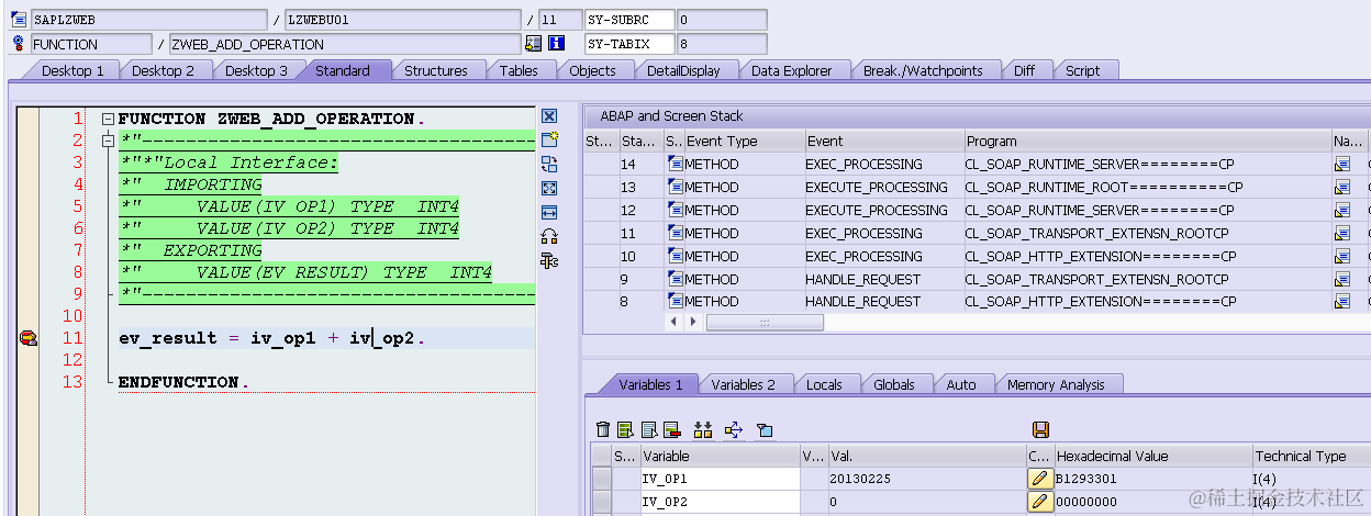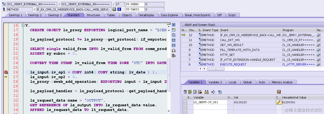 line 28: execute web service call, the result is included in parameter ls_output.