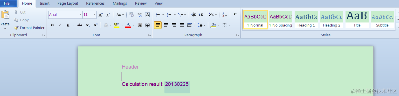 Finally the web service calculation result is displayed in the word document.
