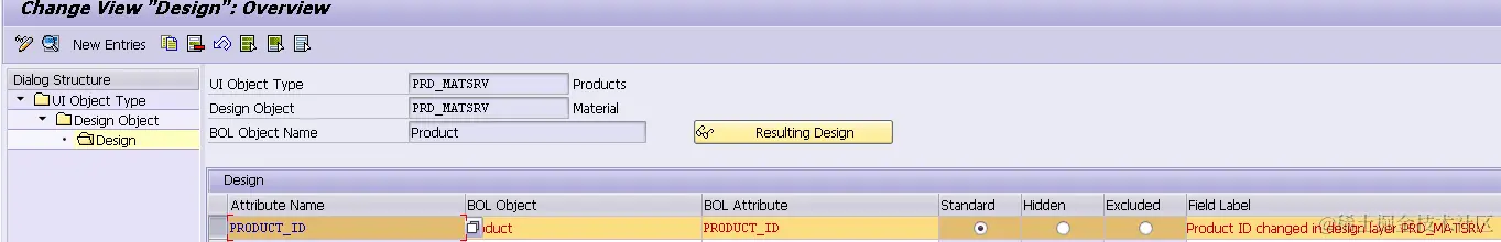 the origin for PRODUCT_ID changes to “Design layer”, since it has higher priority than “ABAP Dictionary”.
