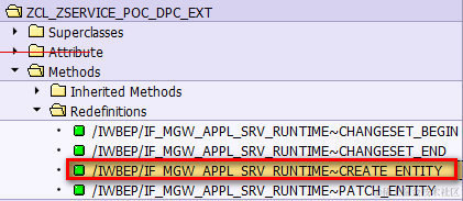 There is another method, CREATE_ENTITY, of DPC_EXT class of the OData service must be redefined.