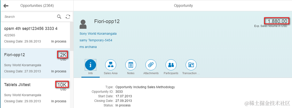 You have observed the following behavior: the sales volume is displayed in detail view with1880 USD, while in master list, it is displayed as 2K for short. Why?