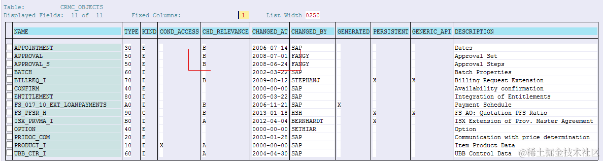 Note: “30” means object name “APPOINTMENT”, you can find the relationship from this table CRMC_OBJECTS: