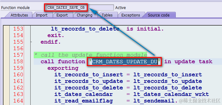 Perform where used list on CRM_DATES_UPDATE_DU and we can get CRM_DATES_SAVE_OB,