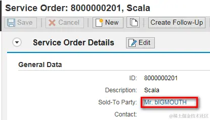 Let’s try to resolve one real issue now. What we want to achieve is: in CRM we need a CDS view which returns the service order guid together with its Sold-to Party information, “Title” ( Mr. ) and “Name” ( blGMOUTH ).