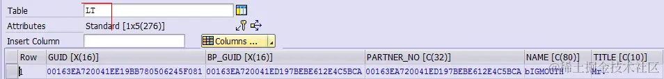 Here in line 30 the two columns of CRMD_PARTNER and BUT000 are joined. The importing parameter is used in SQLScript source code by adding a “:” before the variable name. The hard code “00000001” means the constant value for partner function “Sold-to Party”.