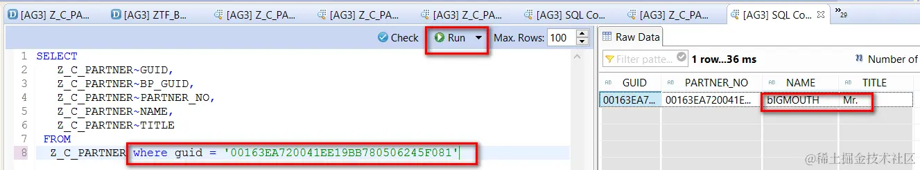 or you can also check against single data record, by clicking “SQL Console”, maintain the SQL and click Run: