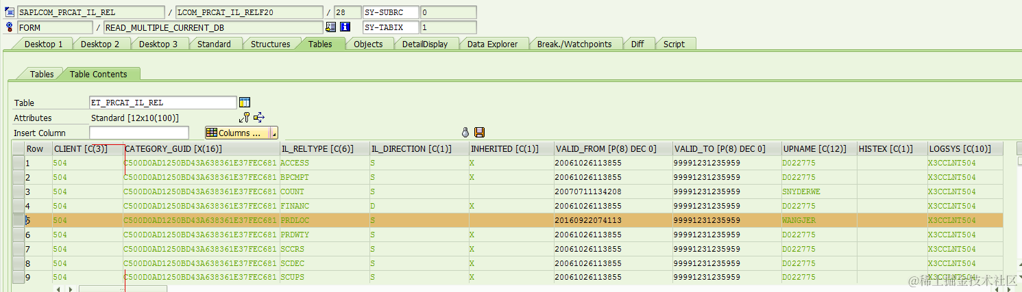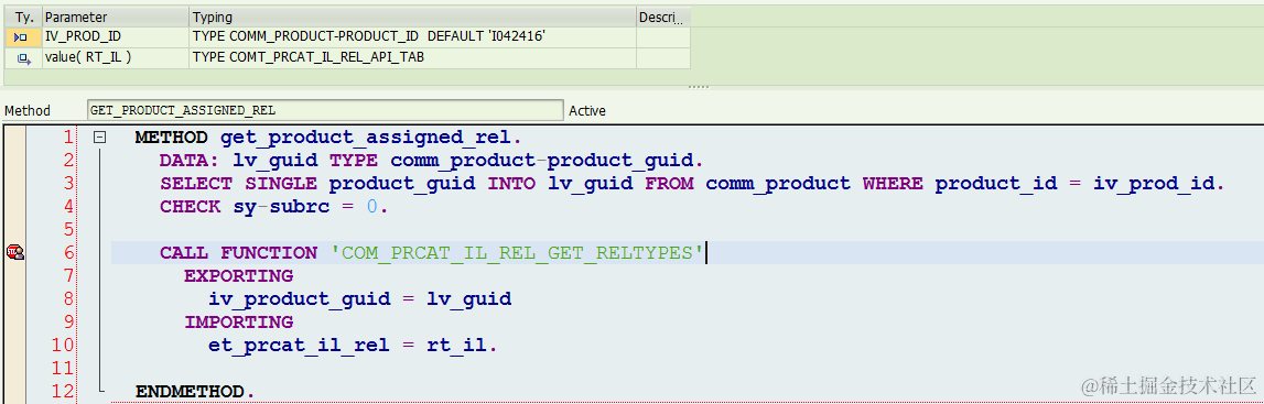 So I begin to debug function module COM_PRCAT_IL_REL_GET_RELTYPES: