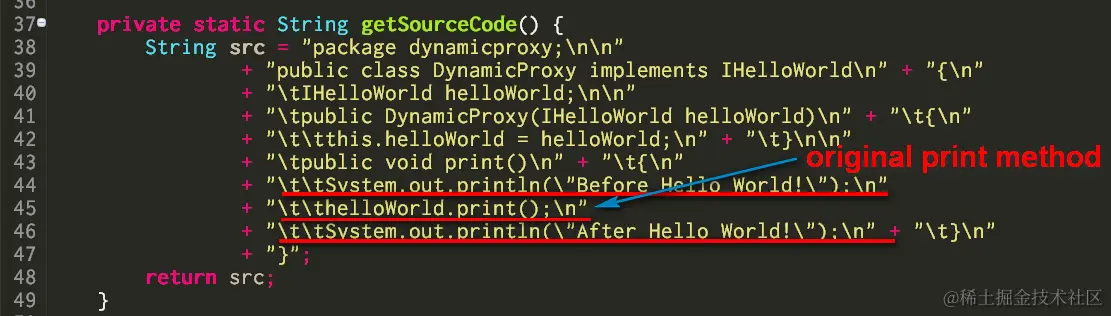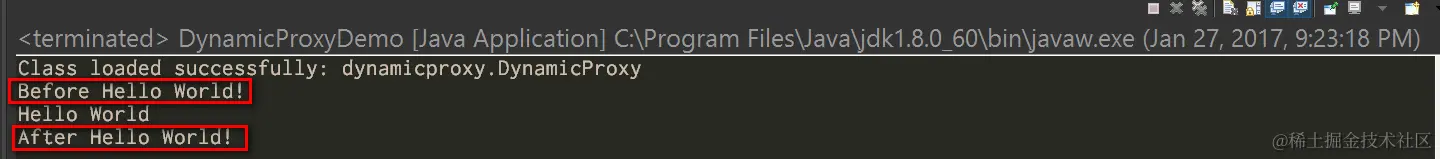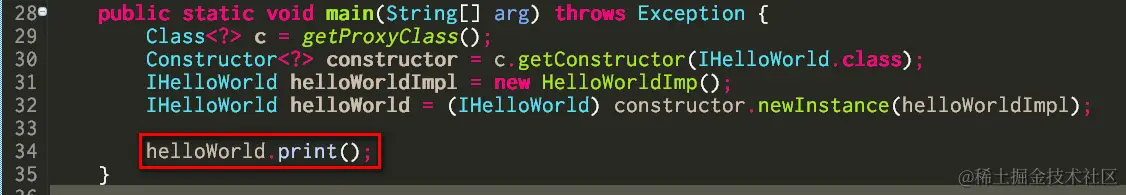 Then I will create a dynamic proxy class ( which will be persisted to my laptop ) based on HelloWorldImp, with additional line System.out.println(\”Before Hello World!\”); before original method print() and System.out.println(\”After Hello World!\”); after method print().