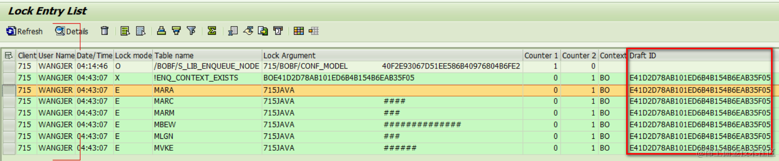 At this time ( product is still in edit mode ), we can find out the lock is still acquired via tcode SM12. Also the draft uuid would be found: