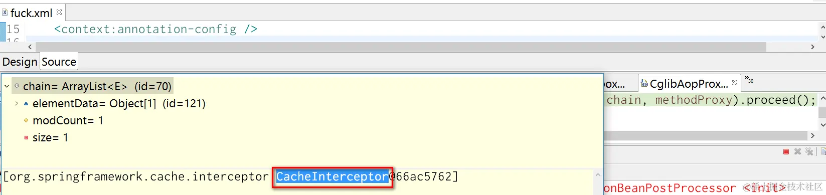 In this example, there is no more cache evaluation and cache fill logic. All such stuff are taken over by Spring under the hood and completely transparent to application developer, with the help of following bean configuration in xml:
