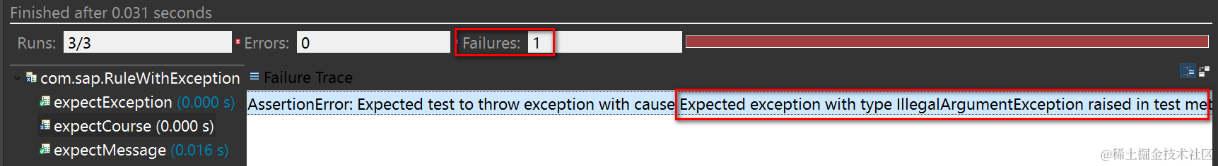 Besides exception, we can also manually specify a sub string which is expected to appear in an error message, and add our custom error message in Junit report if a test method fails. See following code for example: