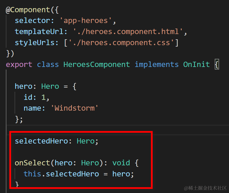 新建一个property selectedHero, 用于存储选中的hero: