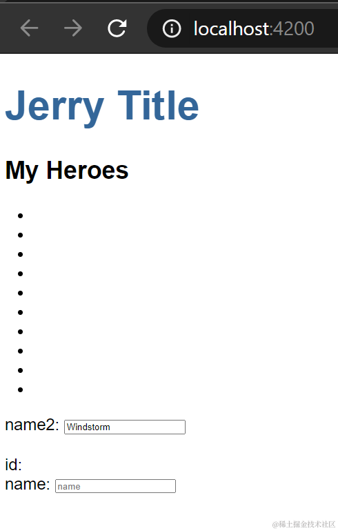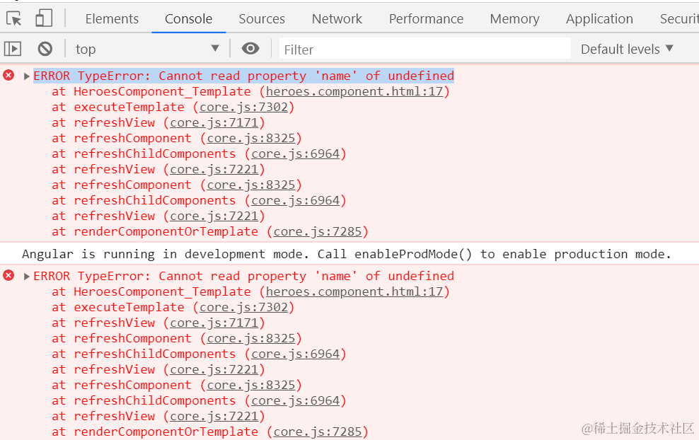 问题的根源是,selectedHero这个property,在应用程序初始化时是undefined,因为当前用户尚未点击任何一个li元素。解决办法是使用 Angular的指令*ngIf进行条件渲染: