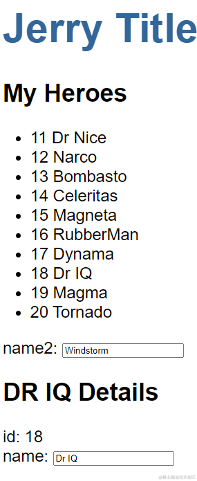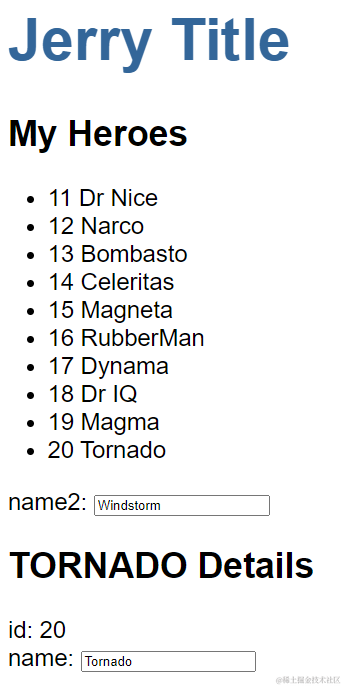 在明细页面里显示selectedHero的字段值: