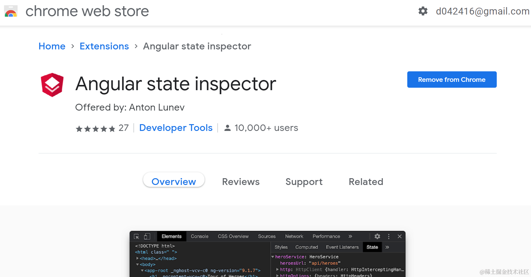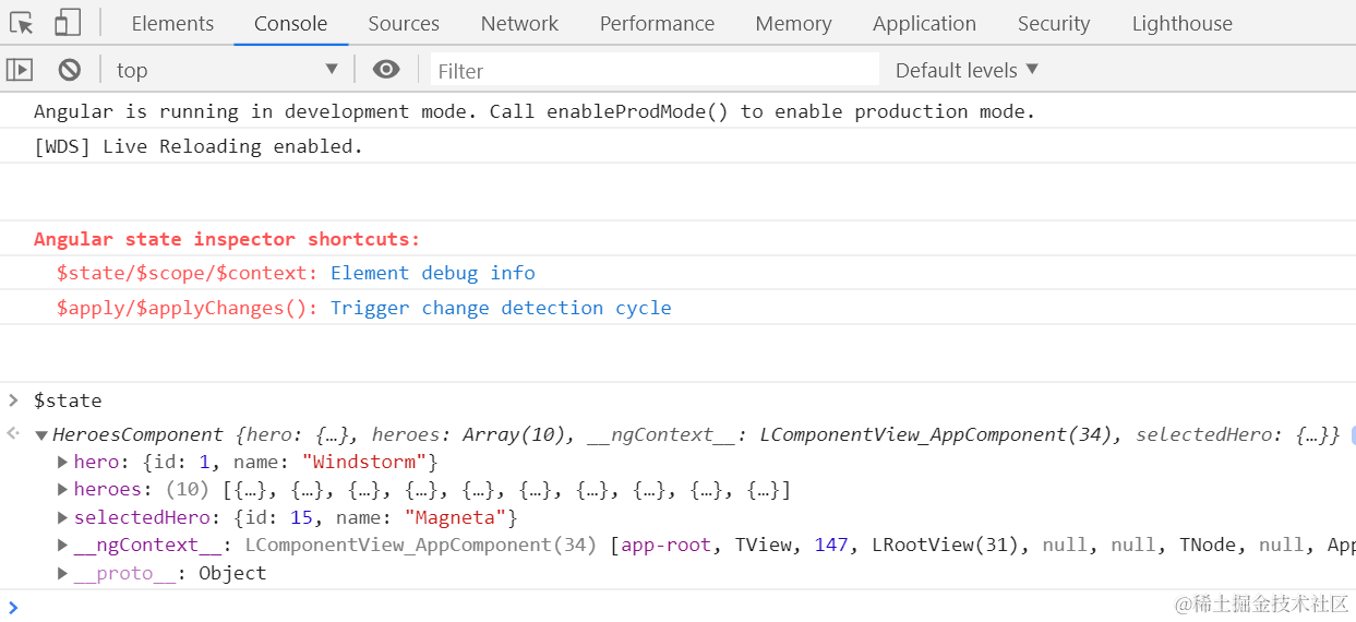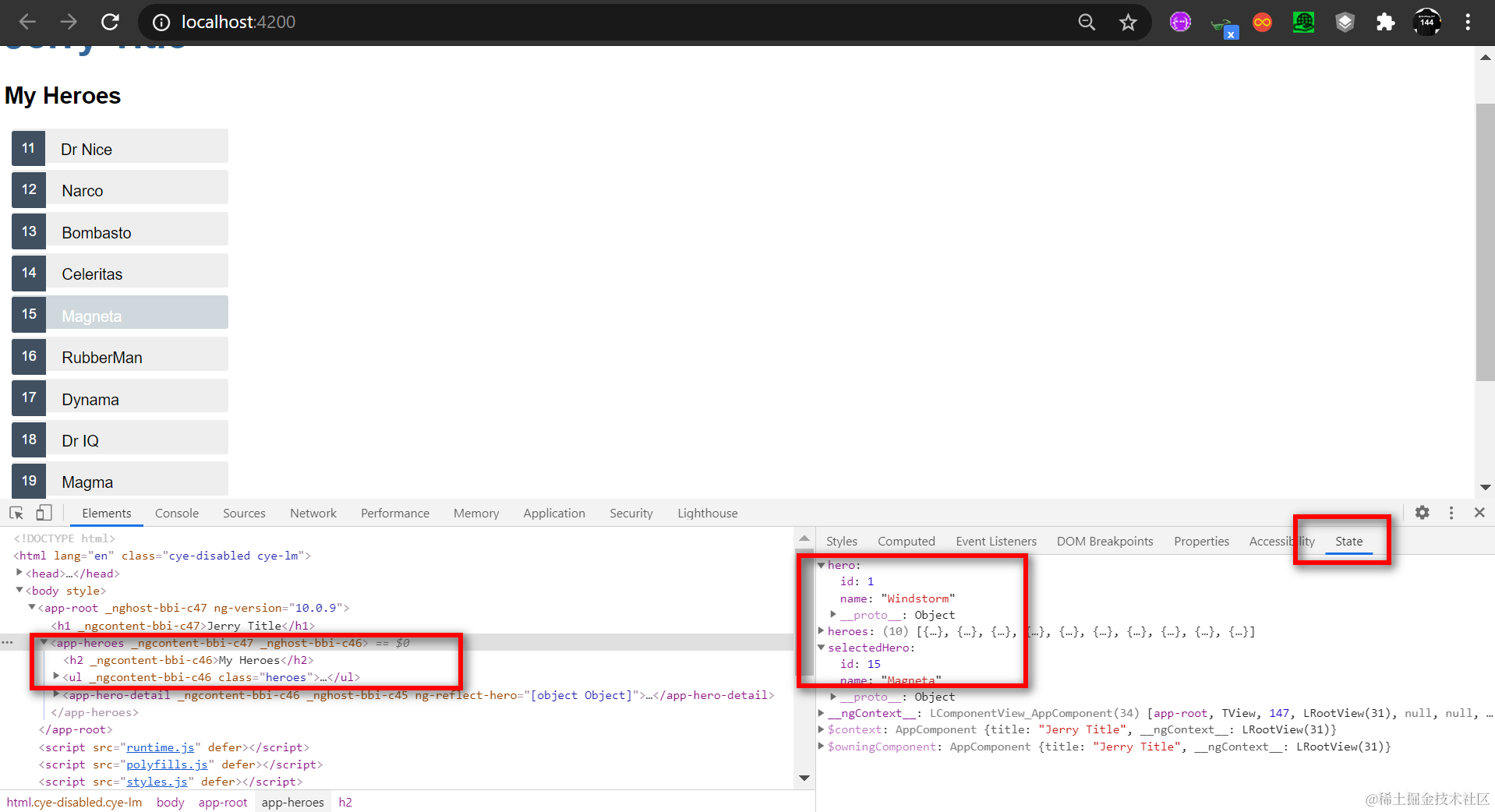 打开一个Angular应用,在Chrome开发者工具的Elements标签页里,多出来一个State标签,可以查看当前Angular应用的绑定信息: