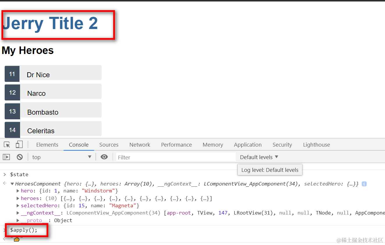 需要手动在console里执行$apply()才能生效: