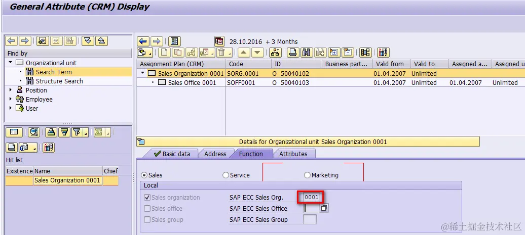 O 50040102 is found because it is marked as SAP ECC Sales Org. 0001.