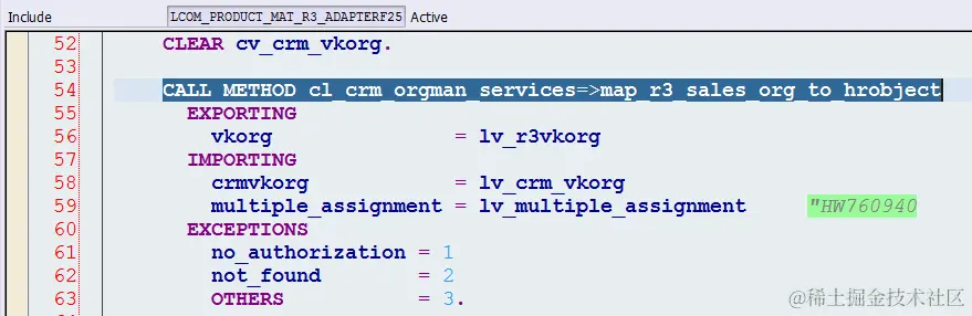 In line 45, the variable iv_crmvkorg already contains the converted sales organization in CRM format.