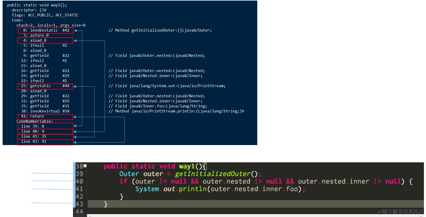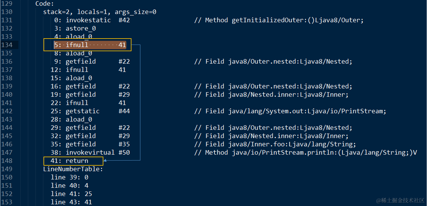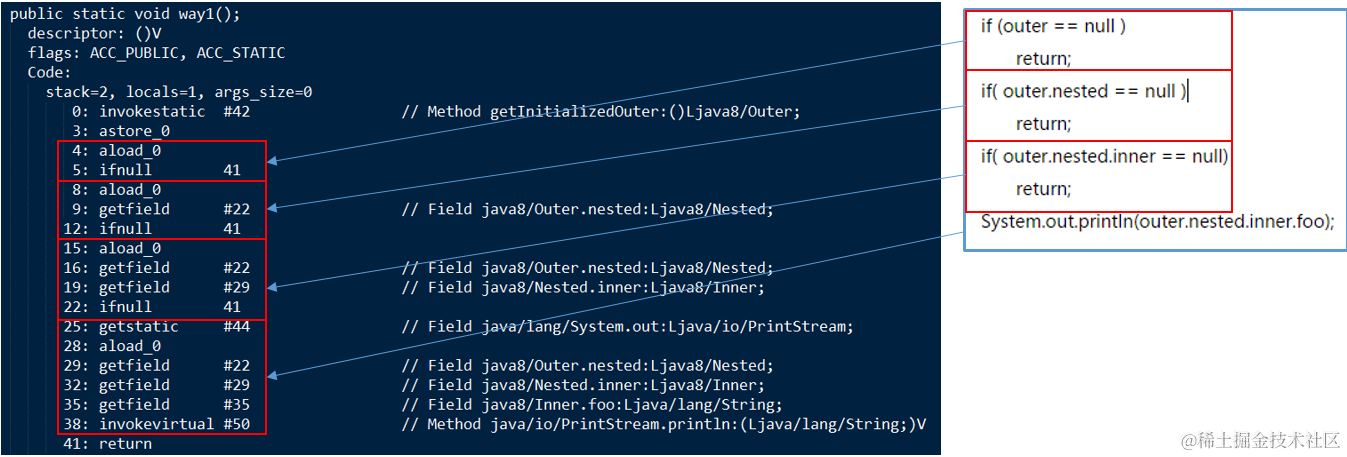 From the list above, we can also see another instruction ifnonnull. So here the interesting fact is, according to the analysis so far, the source code below: