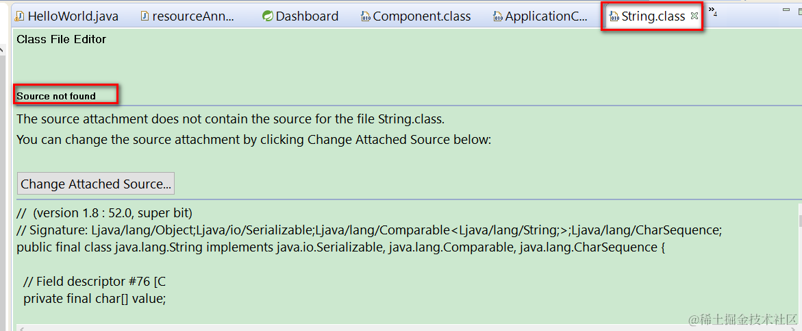 In Eclipse you want to navigate to the source code of standard class String, and you get the following message: Source not found
