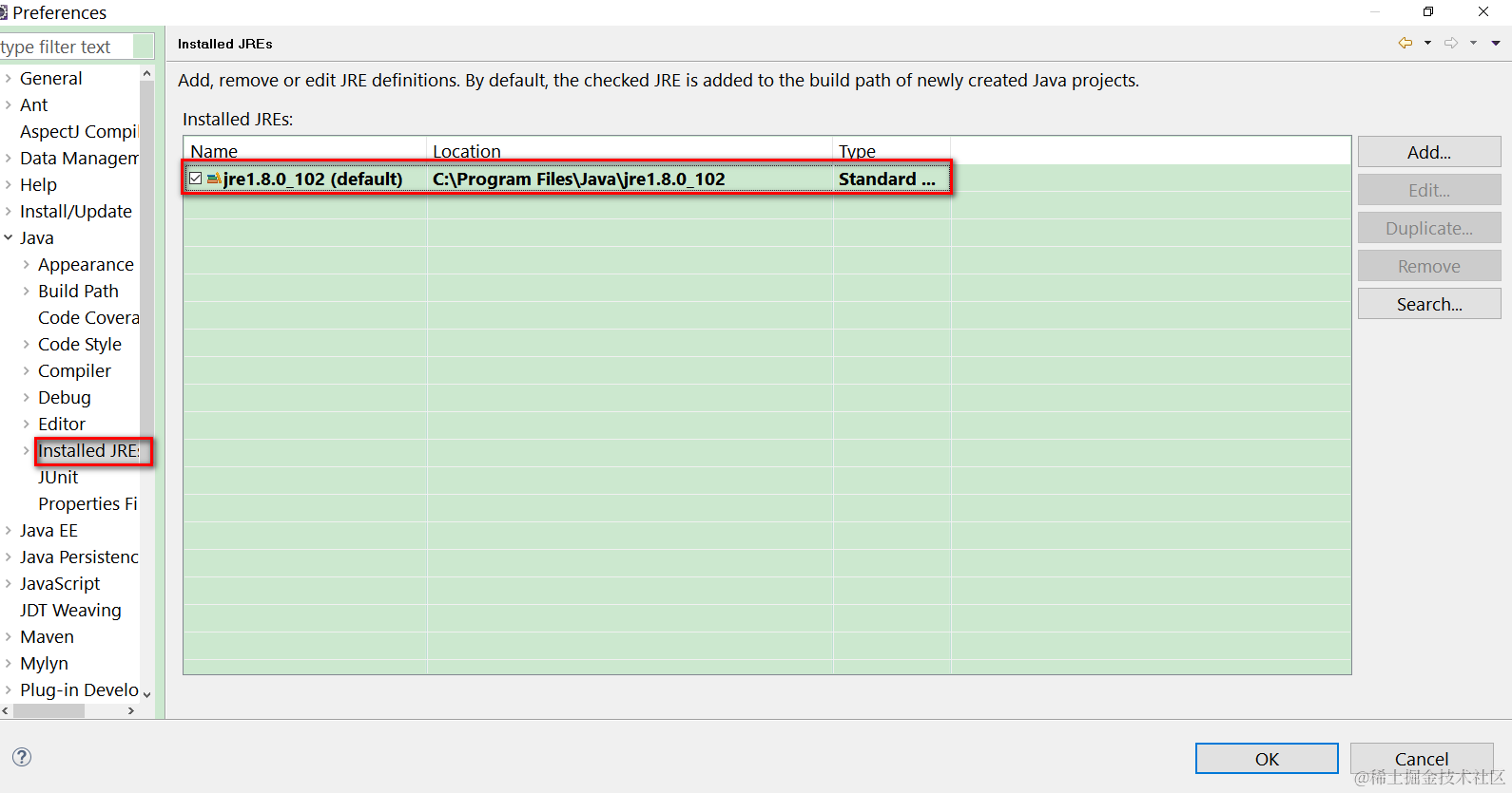 Once added, set JDK as default entry: