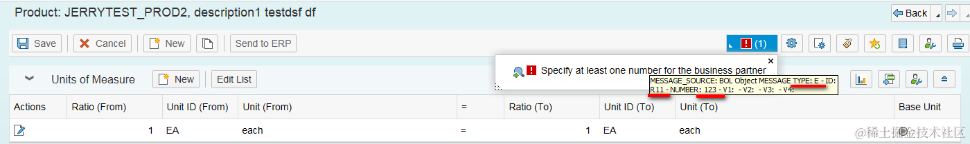 Hover the mouse on message area to get technical information. Message type: E, message id: R11, message number: 123.